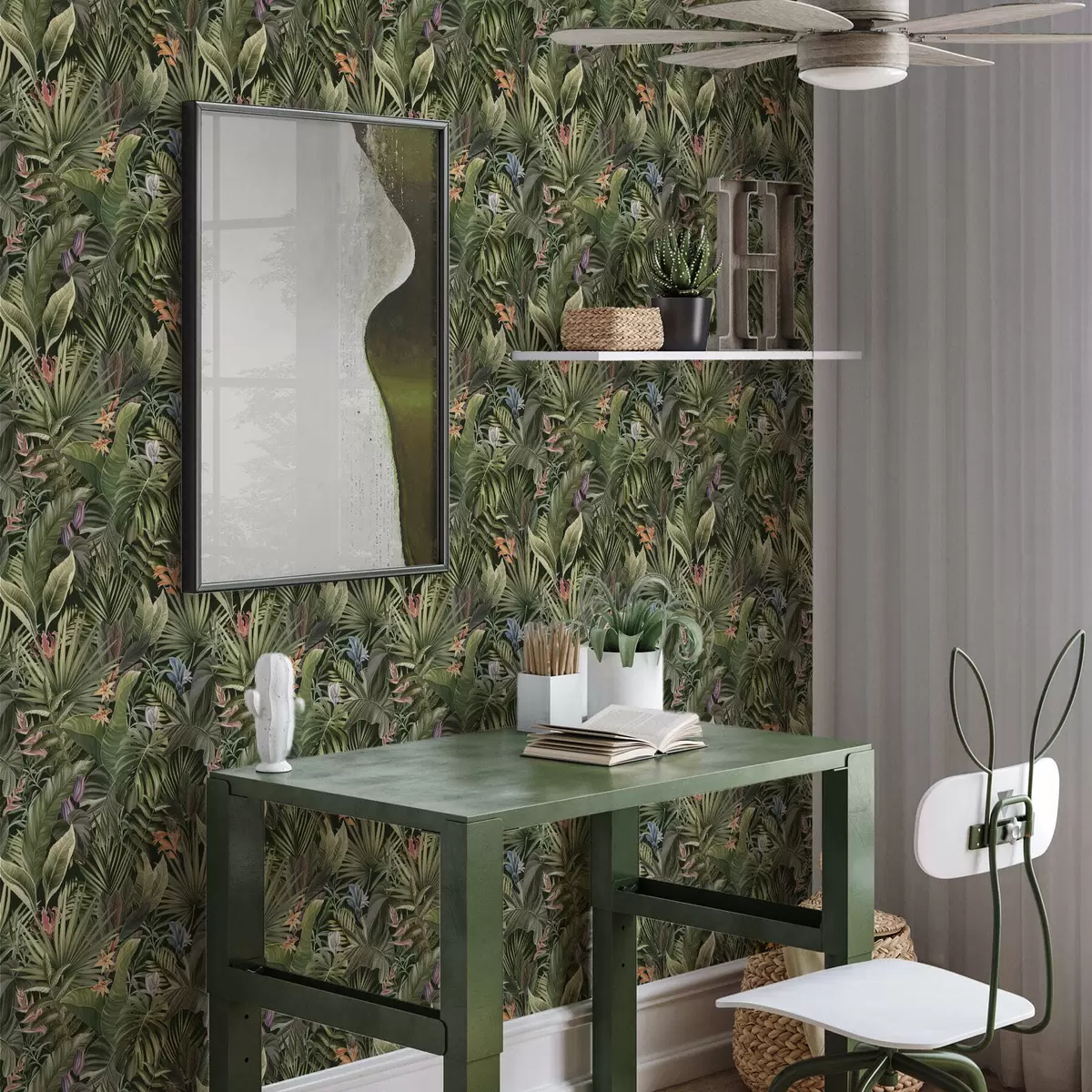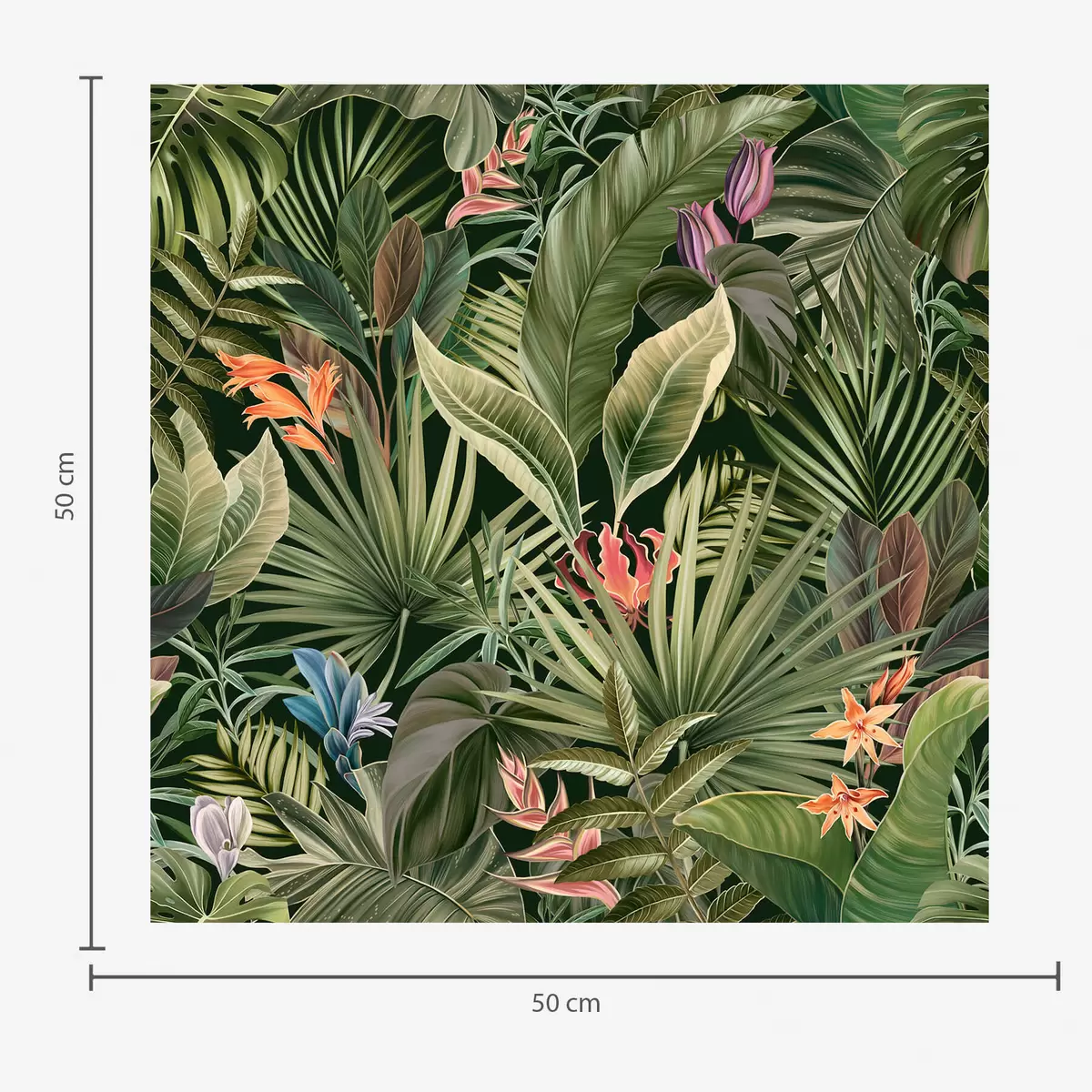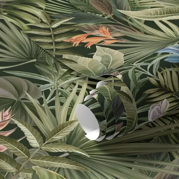 Tapeta Tropické listy s květy na tmavém pozadí Nr. a01153