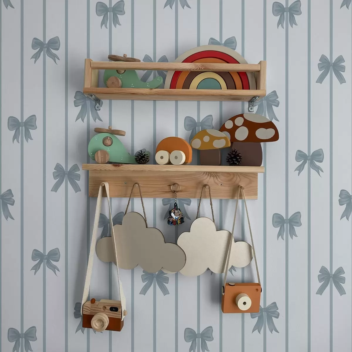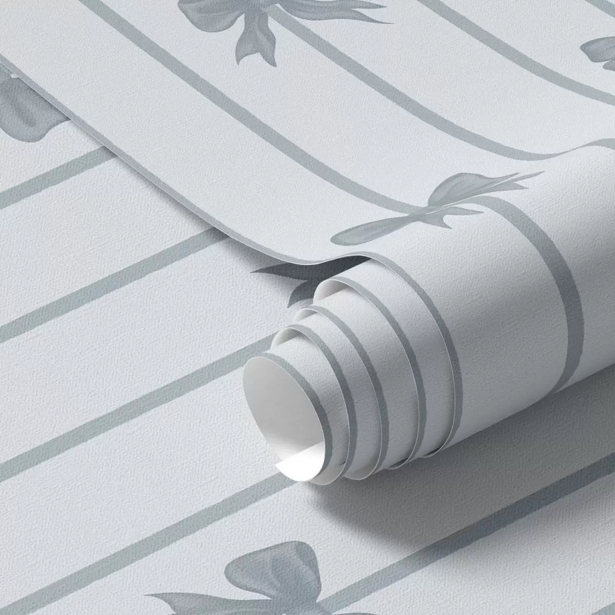 Tapeta Modré mašle na světlém pruhovaném pozadí Nr. a01162v2