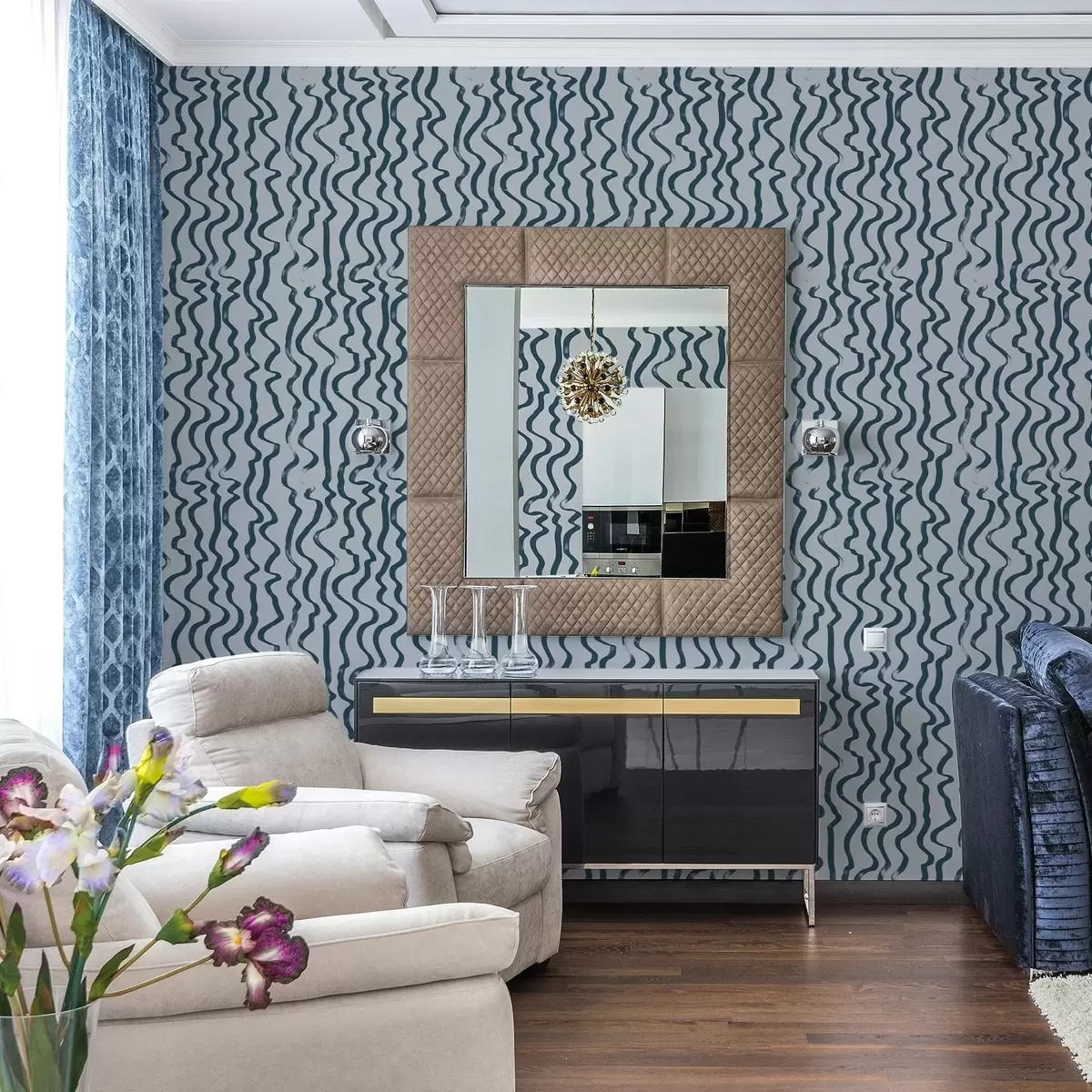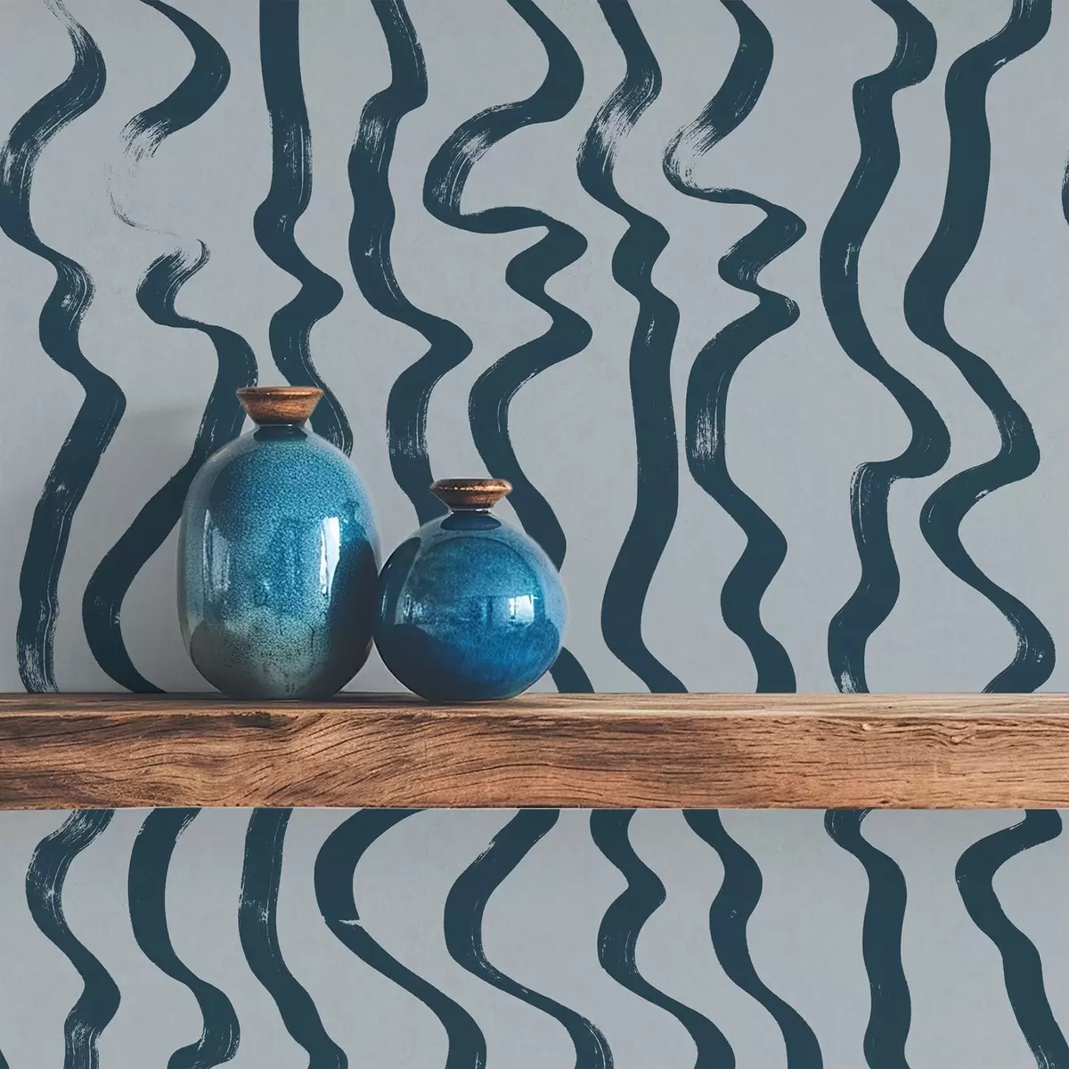 Tapeta Tmavé vlnovky na modrém pozadí Nr. a01168v1