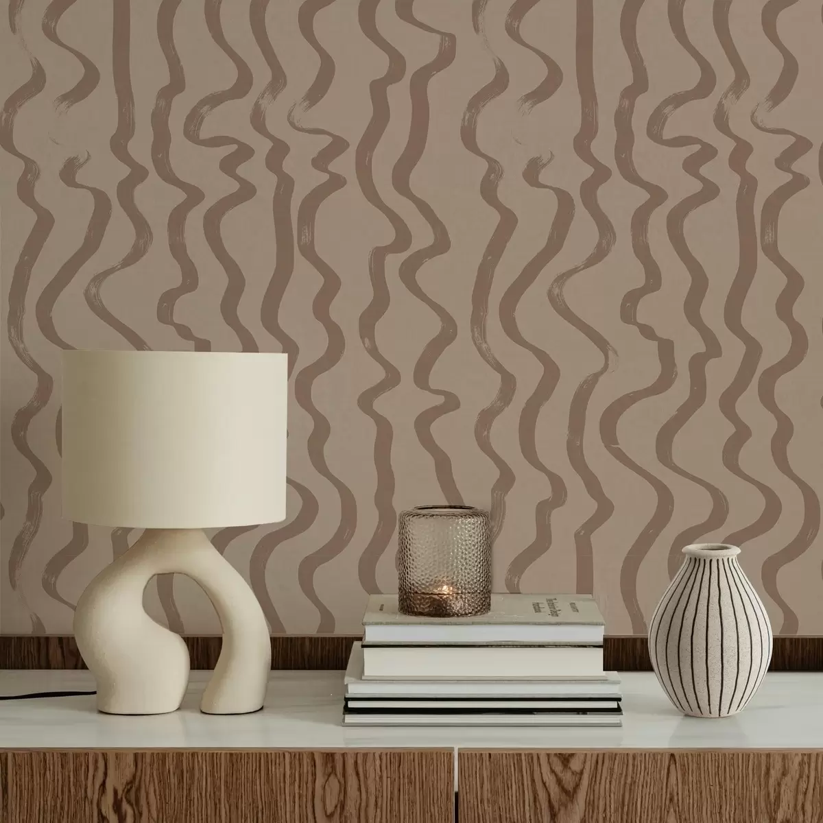Tapeta Béžové vlnovky na světlém pozadí Nr. a01168v2
