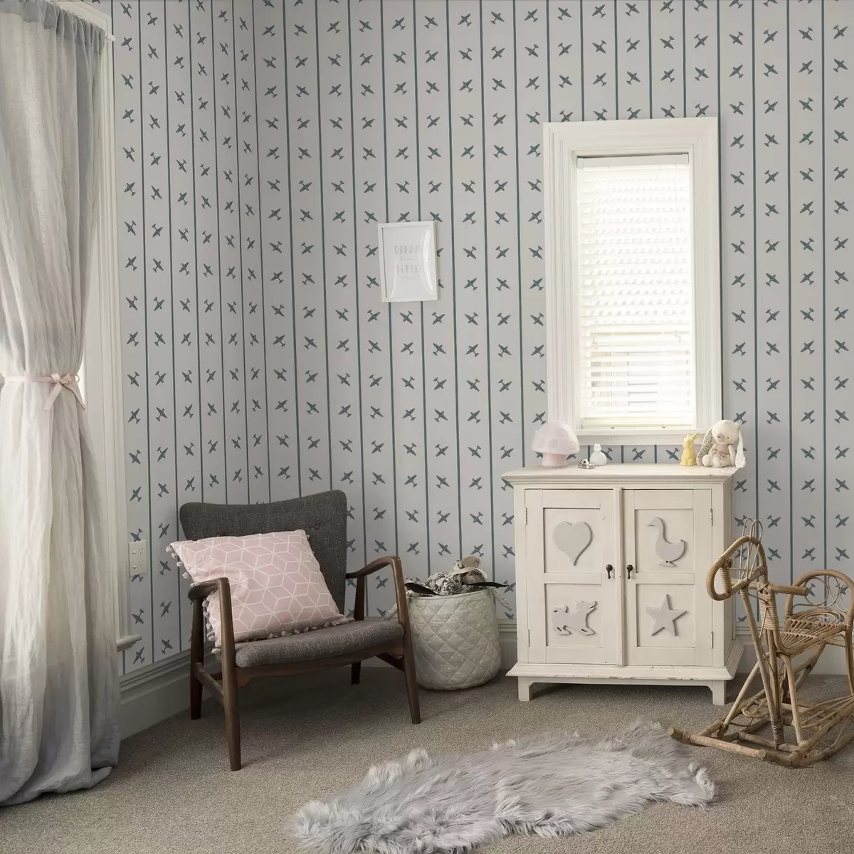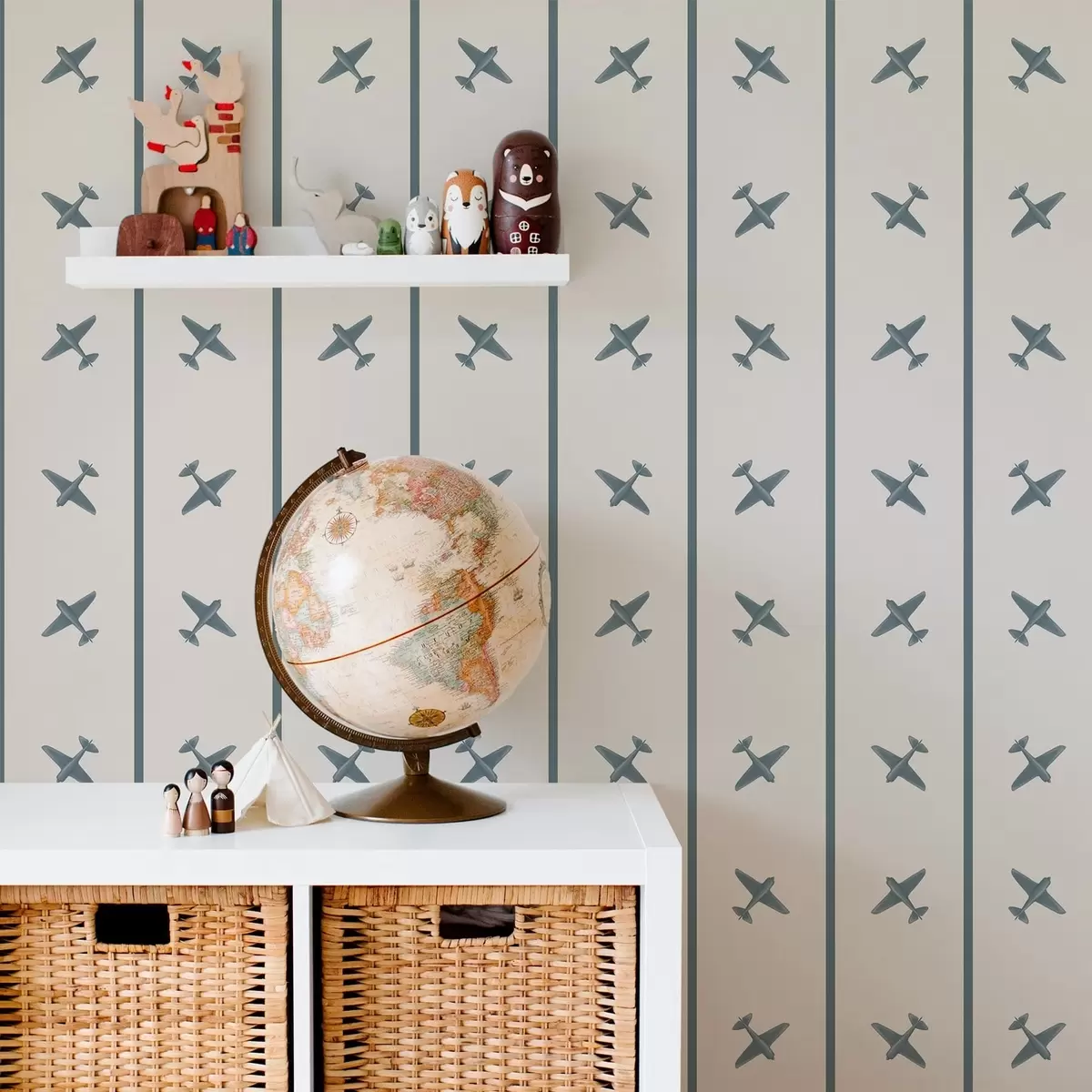 Tapeta Letadla v pruhovaném vzoru s modrými prvky Nr. a01169