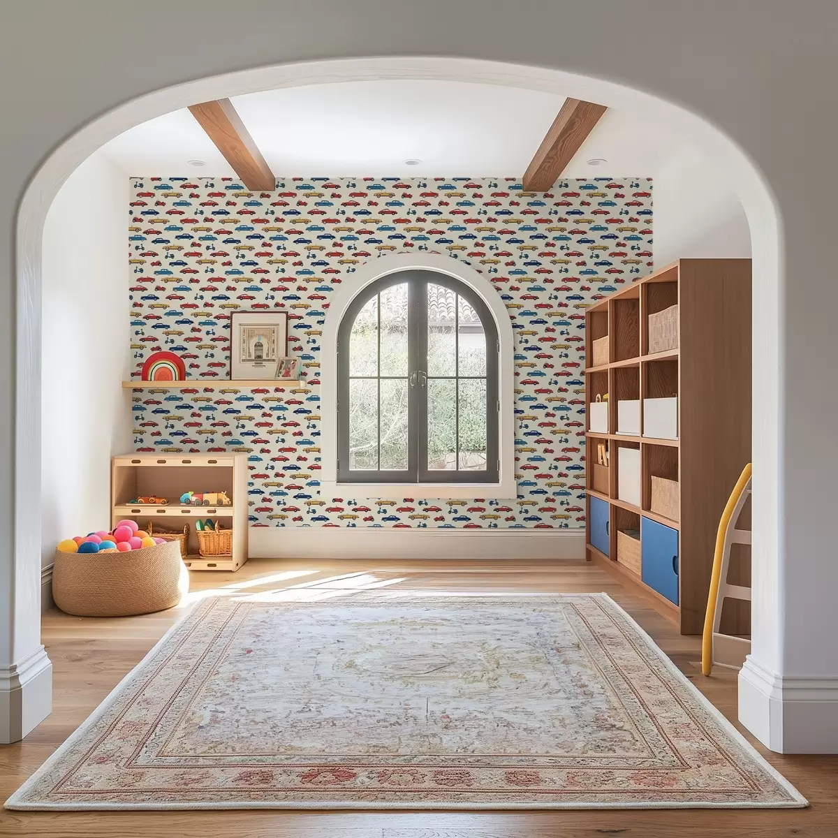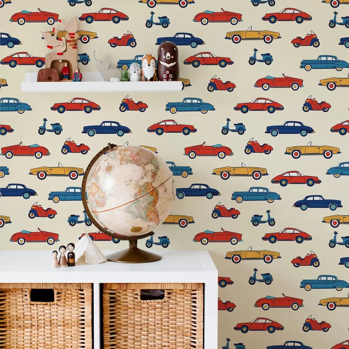 Tapeta Zářivé retro automobily a skútry na světlém pozadí Nr. a01172v1
