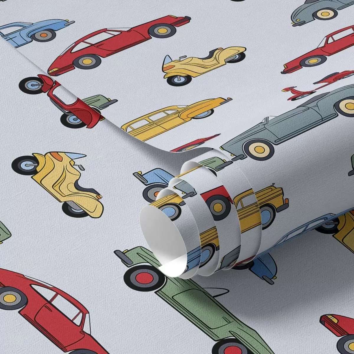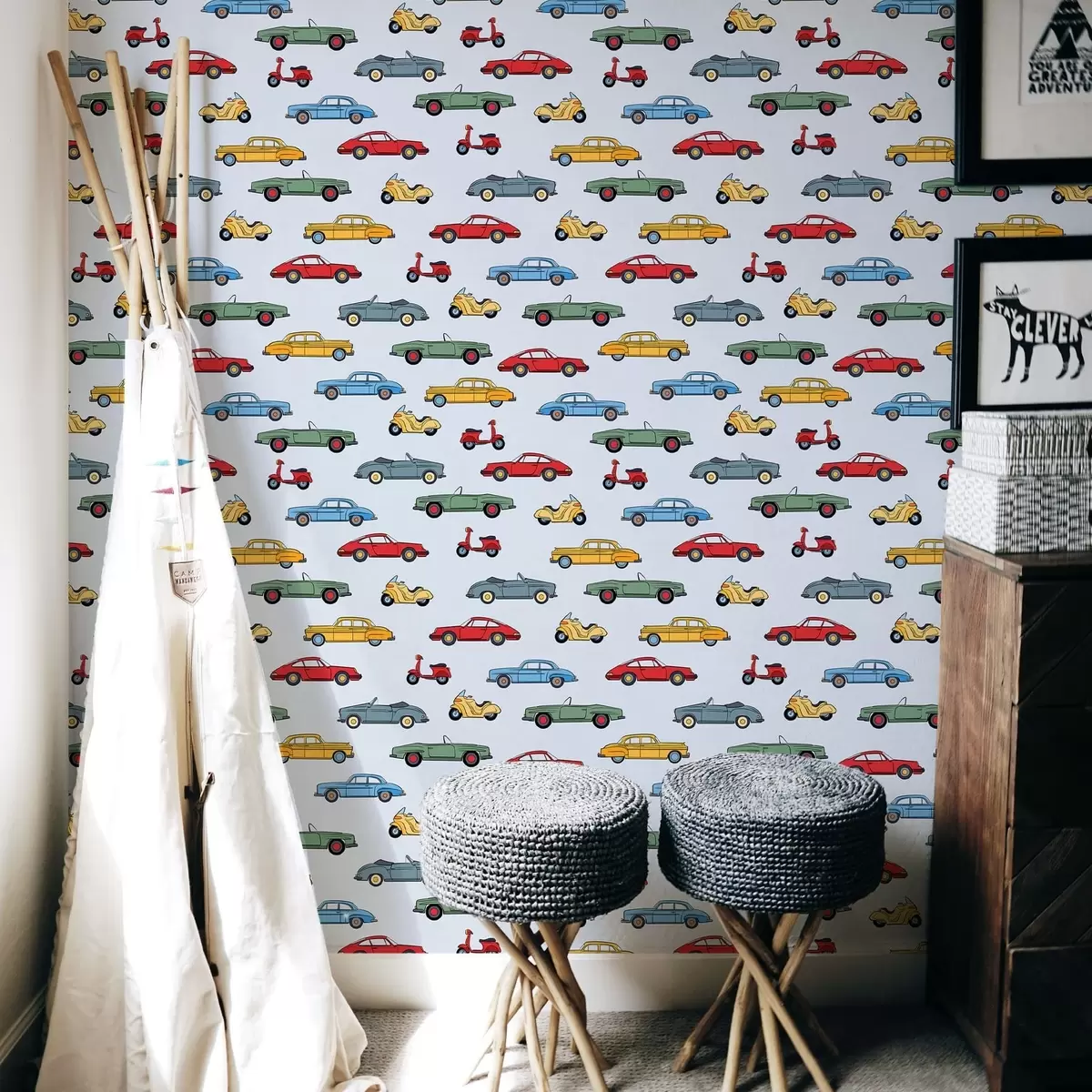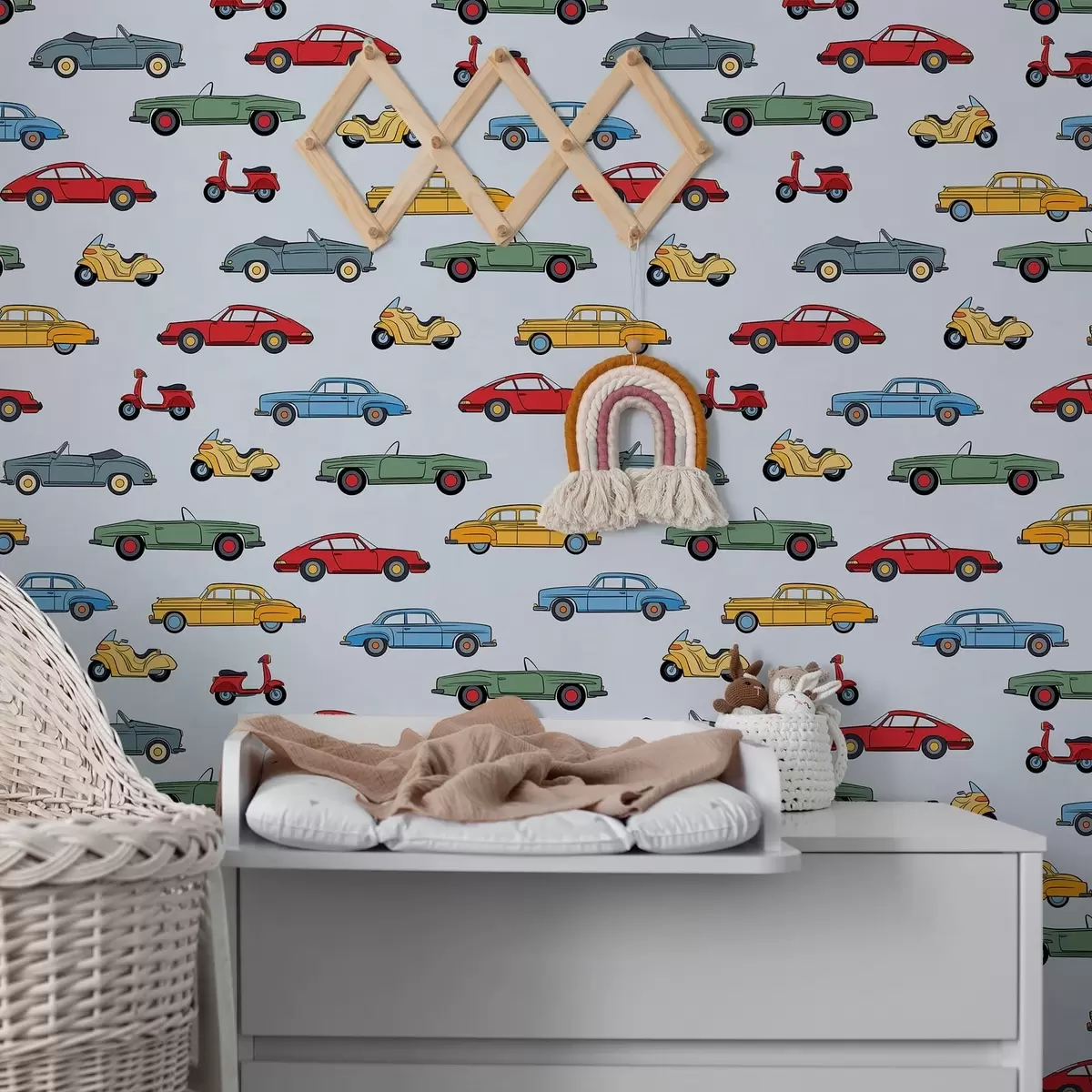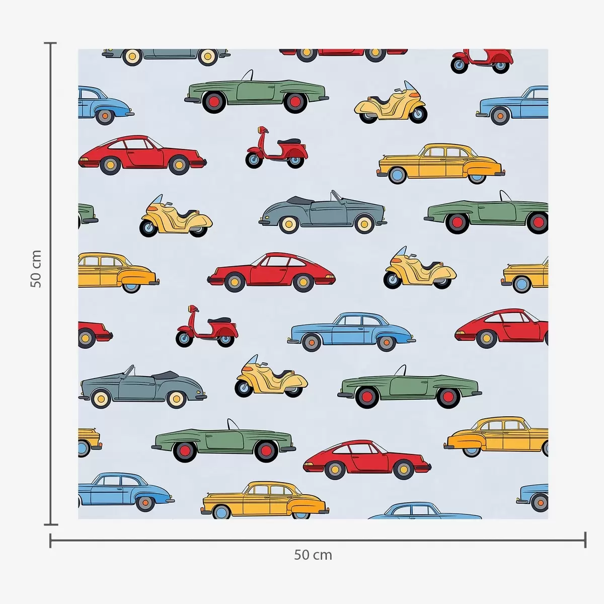 Tapeta Retro auta a skútry na modrém pozadí Nr. a01172v2