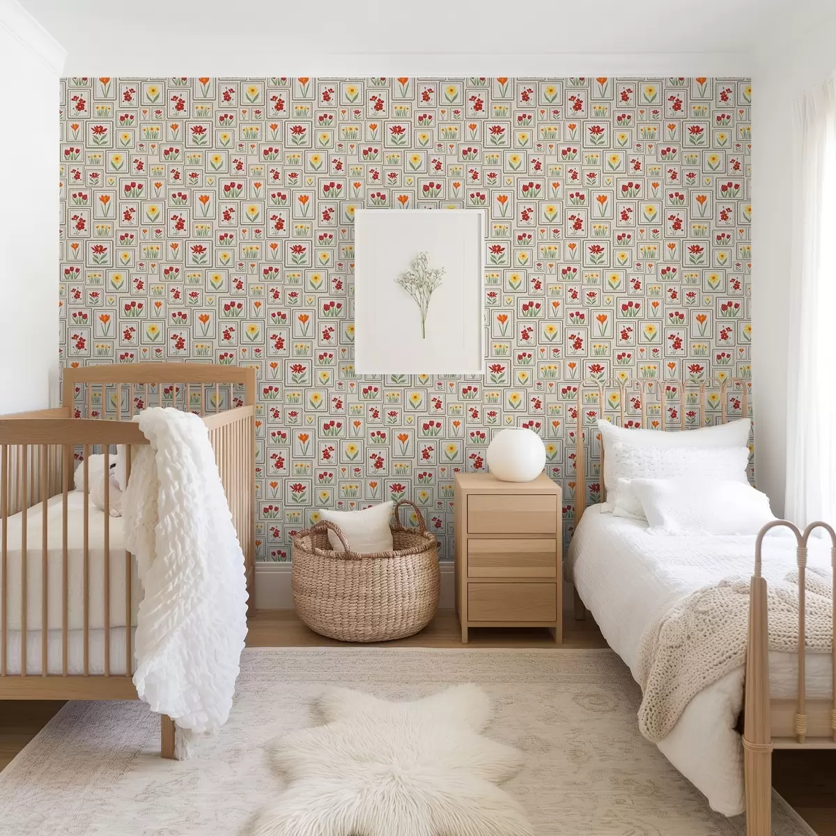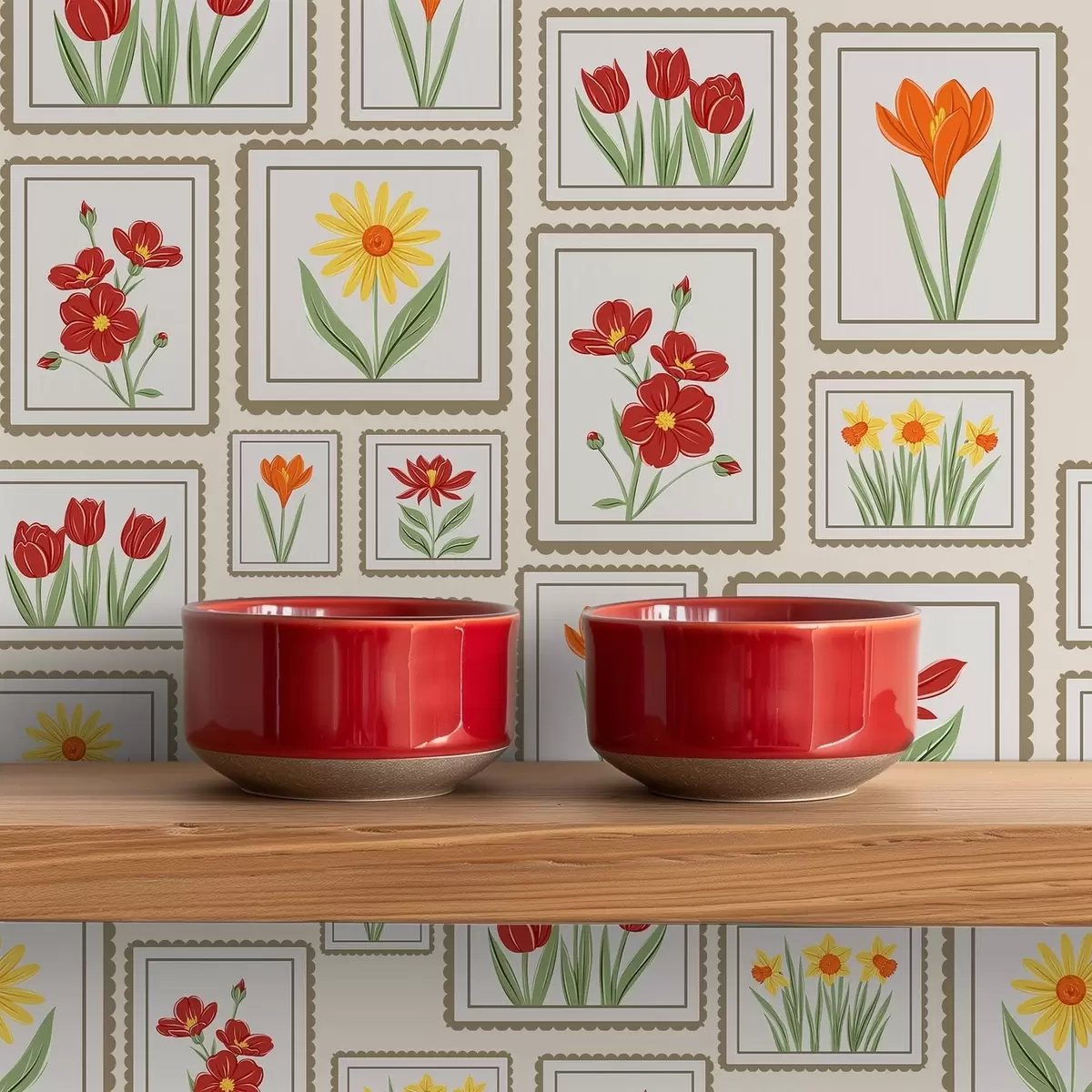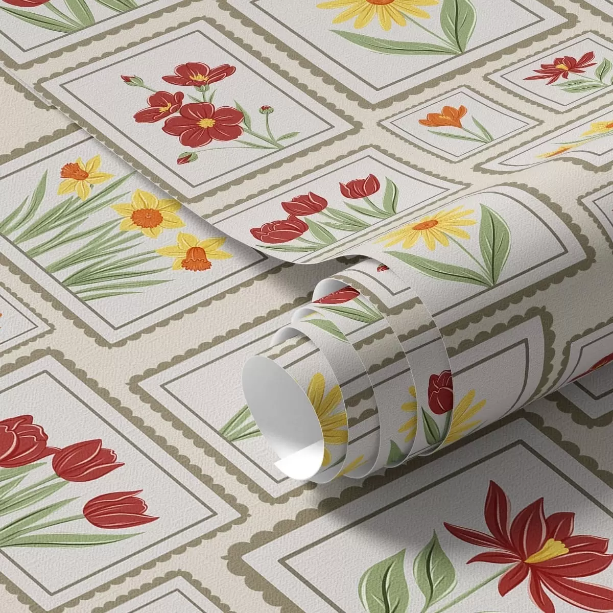 Tapeta Rámované květinové ilustrace v teplých tónech Nr. a01173