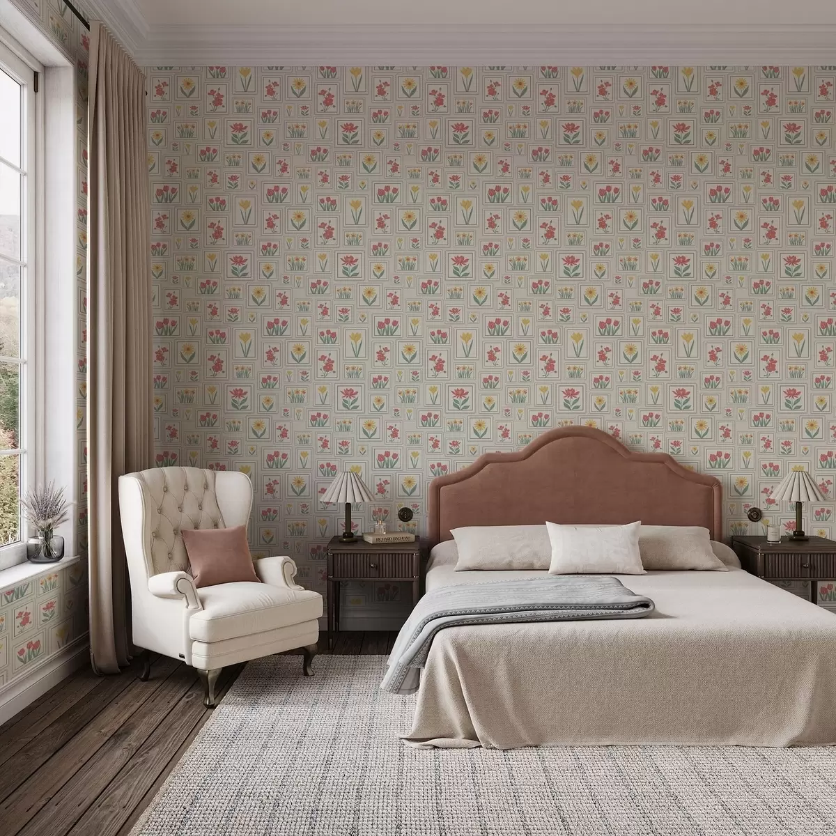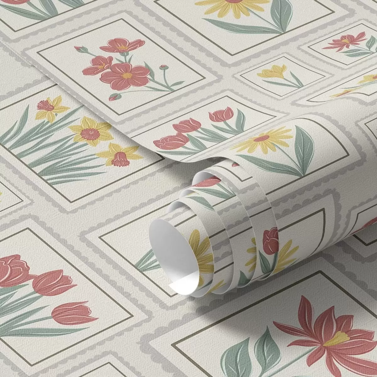 Tapeta Rámované květinové ilustrace na světlém pozadí Nr. a01173v1