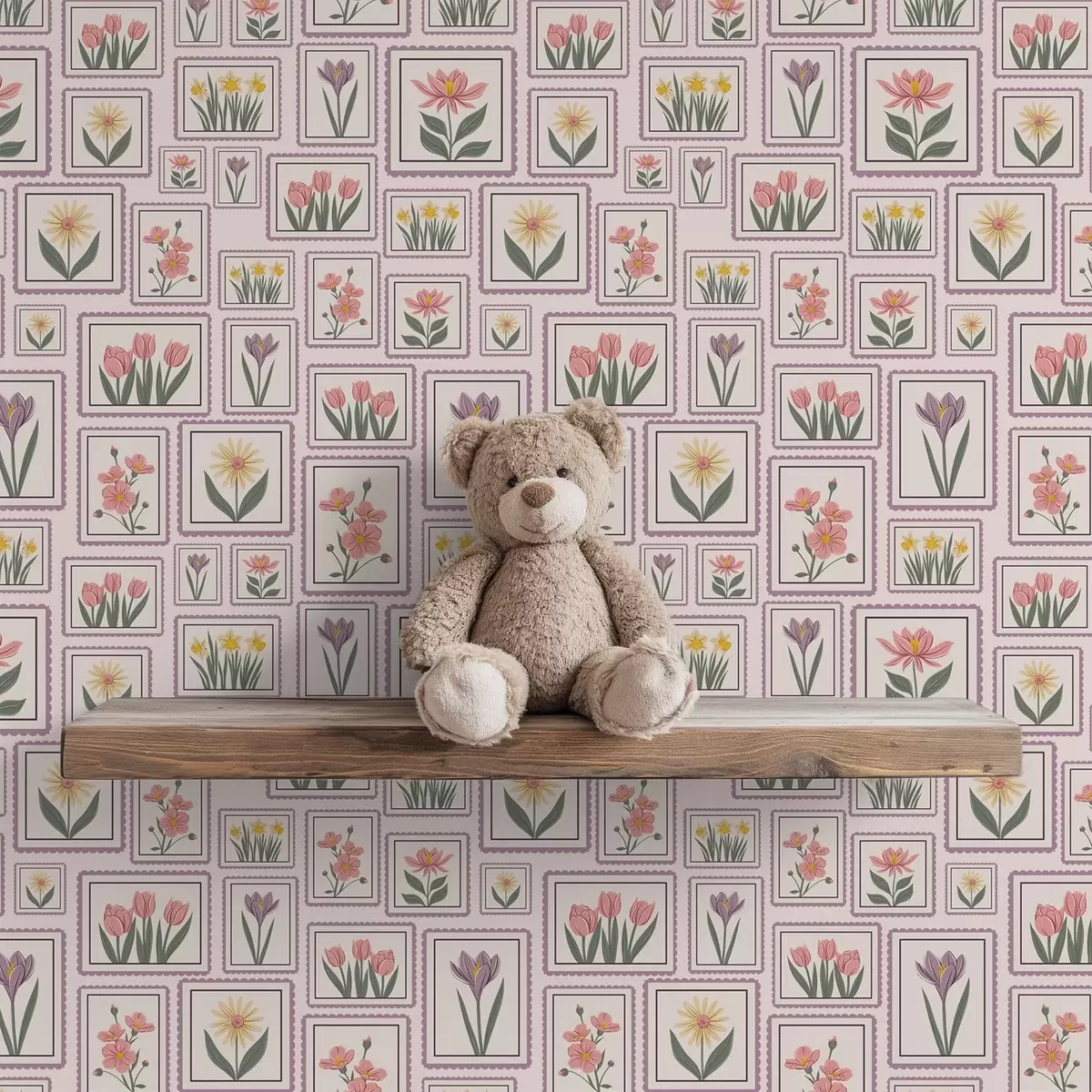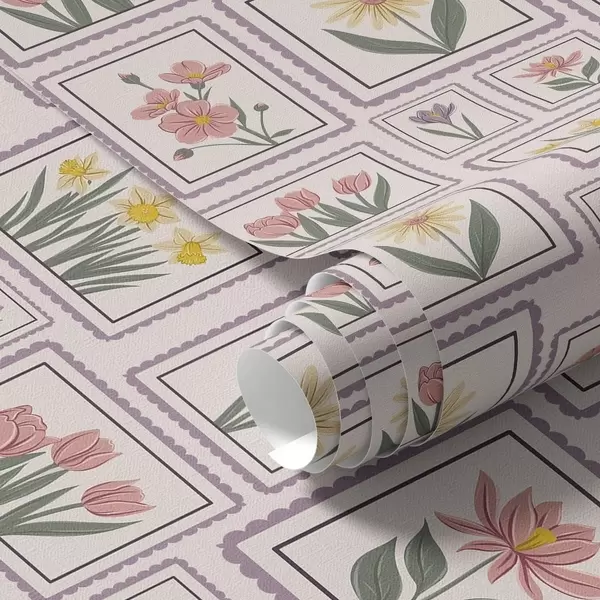 Tapeta Rámované květinové ilustrace v lila odstínech Nr. a01173v2