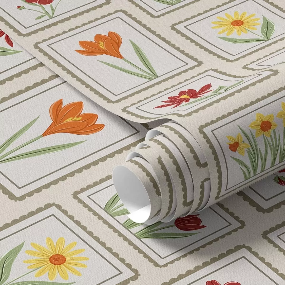 Tapeta Zářivé květinové ilustrace v rámech Nr. a01174v1