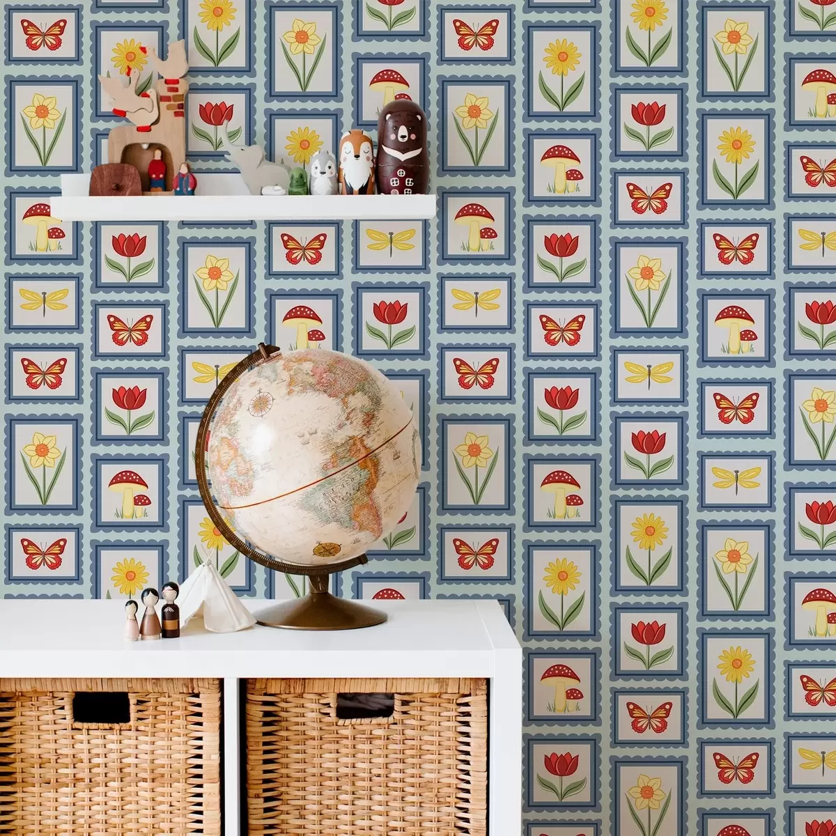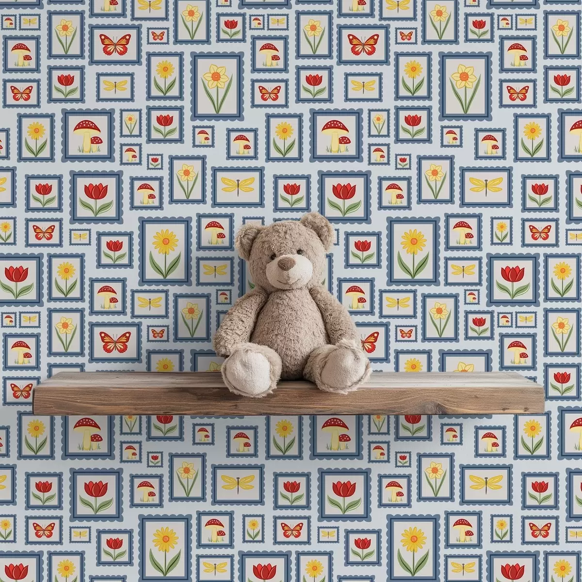 Tapeta Ilustrace v rámech na modrém pozadí Nr. a01176