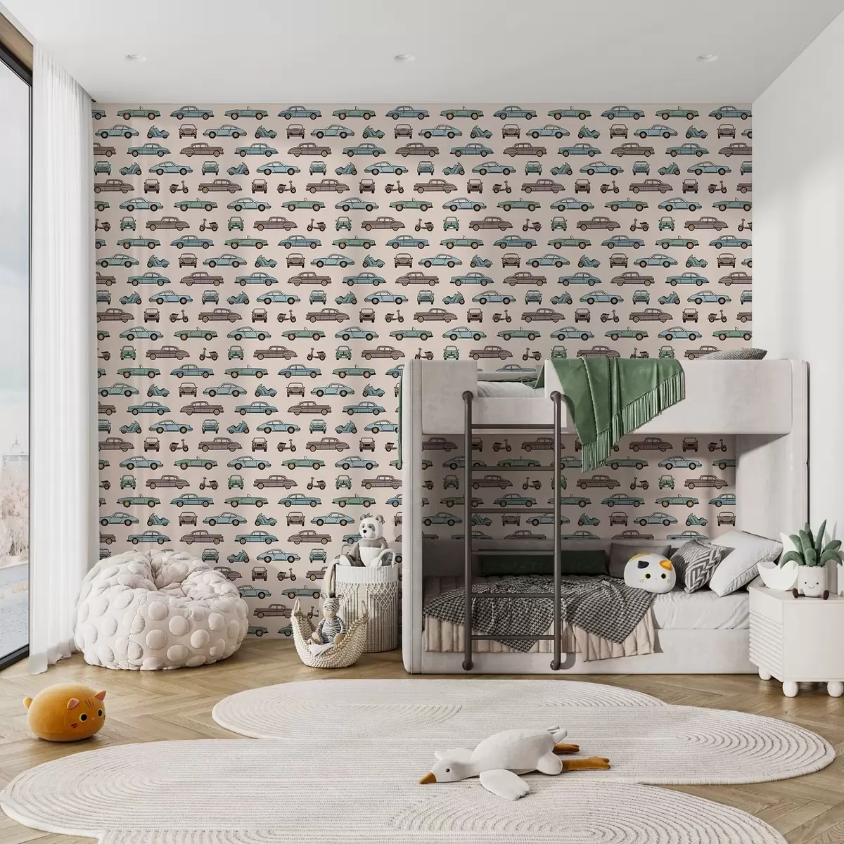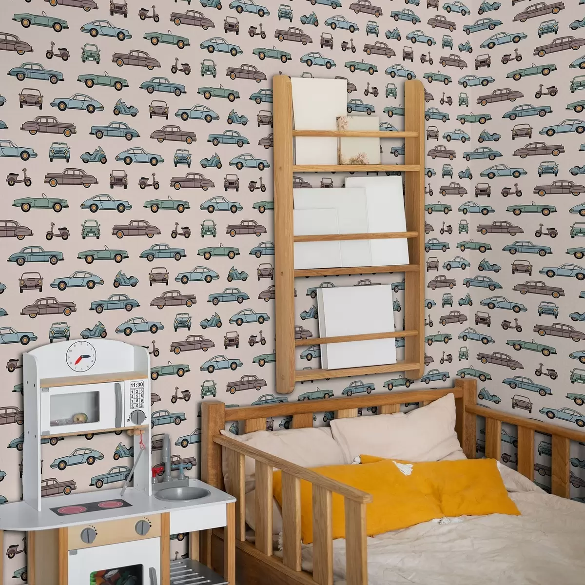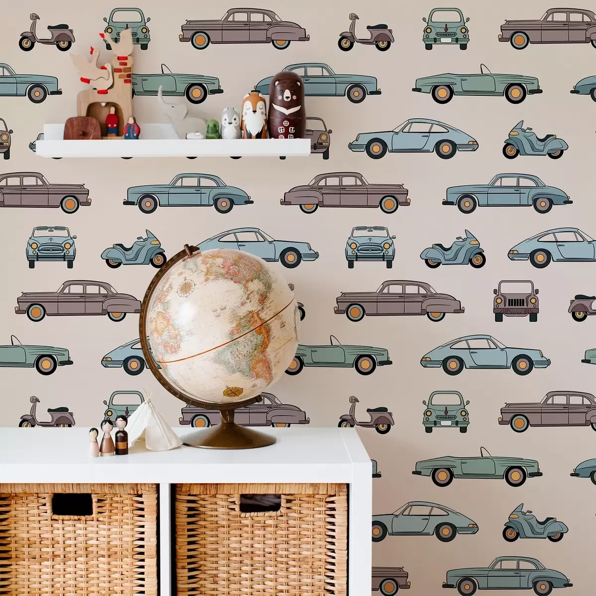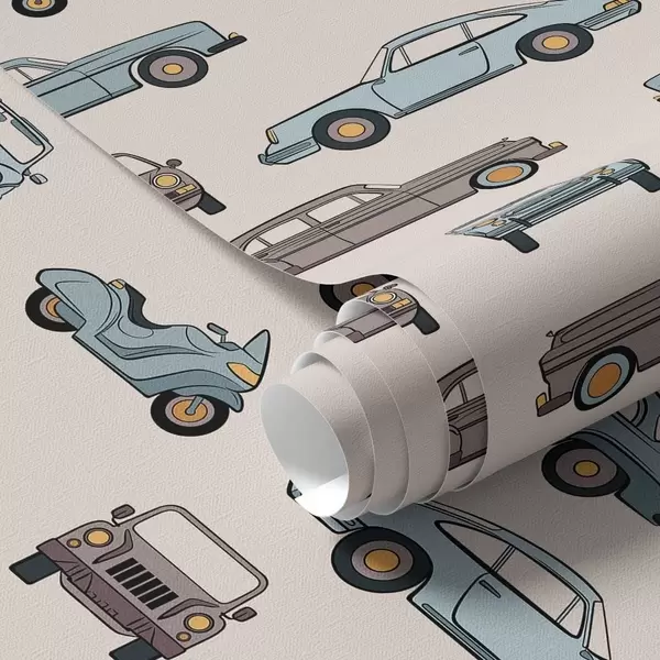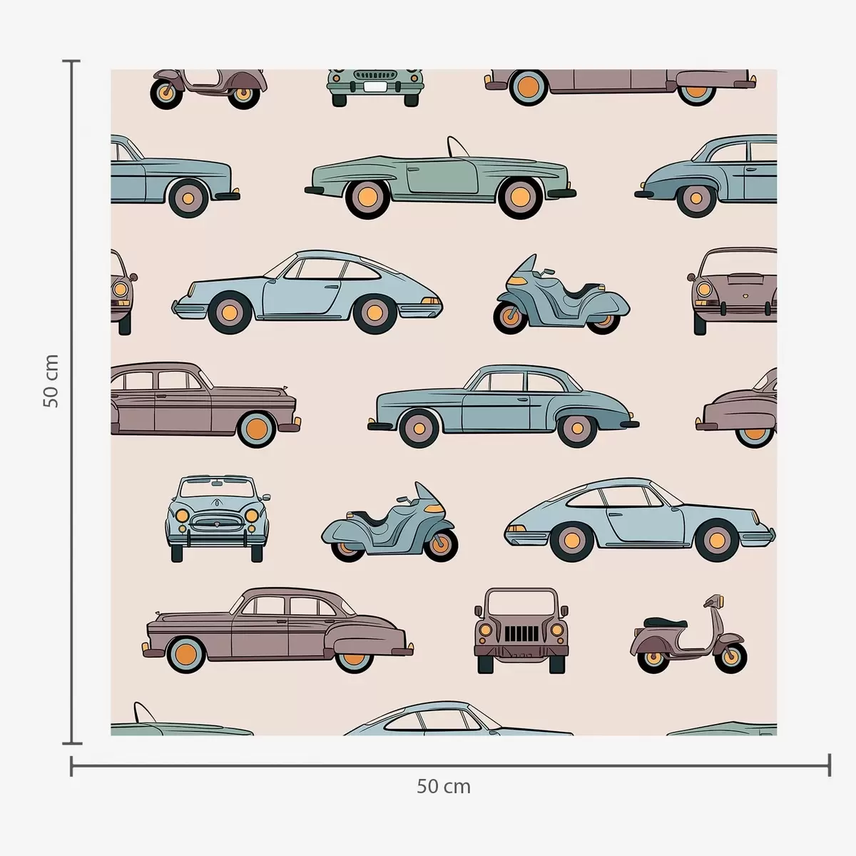 Tapeta Retro auta a skútry na béžovém pozadí Nr. a01178v1