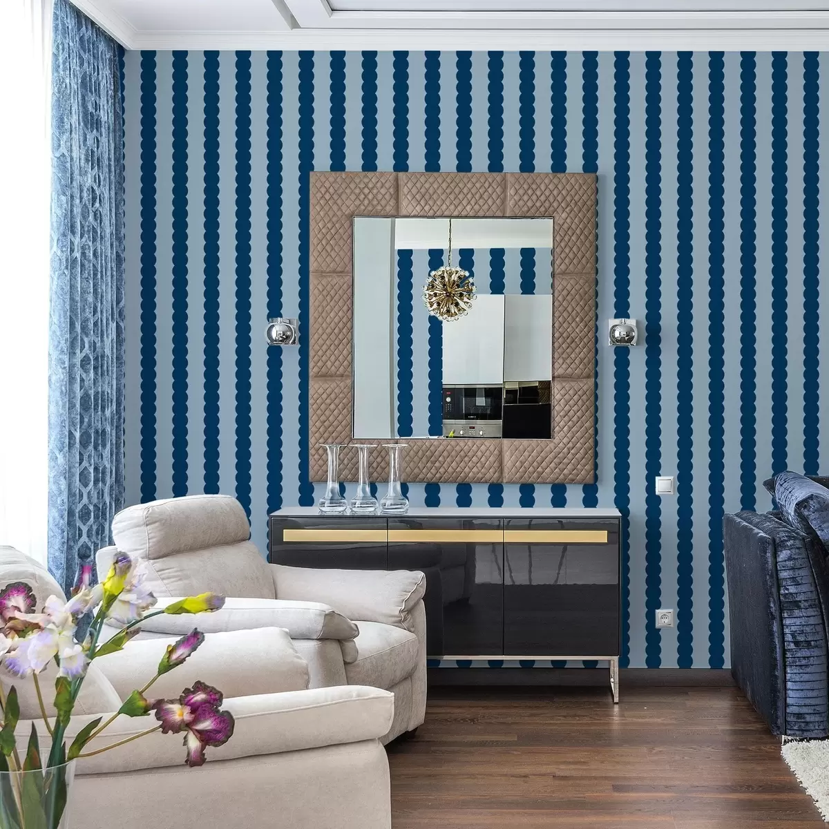 Tapeta Tmavě modré vlnovky ve stylu minimalismu Nr. a01182v3